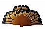 Coton et bois poirier peint en cuivre et doré. Chaque éventail est livré avec sa pochette. Chaque pièce est dessinée et peinte une par une.